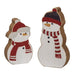 Cozy Chunky Snowman Sitters is a set of two freestanding winter sitters. Sitter has a snowman design and features a gray and red cap with a striped scarf or a red and gray cap with ear flaps and a striped scarf. Snowman looks great on shelves and tabletops and it is easily paired with winter sitters for a charming display. Small snowman measures 5" high by 3" wide and 1" deep. Large snowman is 7" high by 3.5" wide and 1" deep.
