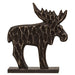 The Brown Moose Sitter is a decorative moose figurine made of wood with a distressed black finish and rustic whittled texture. The moose sits atop a rectangular wooden base for a freestanding display, perfect for sitting on a shelf or table for a rustic woodland touch to the home. Measures 6.5” high by 5.5” wide by 1.25” deep.