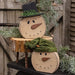 Distressed Wooden Snowman Sitters are an assortment of wooden decor pieces made with festive rustic style. Both snowmen feature a whimsical expression and distressed finish. One snowman wears a top hat with an artificial pine accent, and one snowman wears a green knit cap accented with small jingle bells. Each sitter features a flat, freestanding base and measures 8" high by 5.5" wide by 2" deep. Please note: This Item features a variety of designs which are each sold individually (not as a set). Please add a note in your cart to indicate your preference. If no style is specified, one will be selected at random by our team.