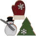 Extra Chunky Winter Sitters are thick wooden cutouts made with festive farmhouse design, available in 3 assorted styles. Each sitter features painted stitch-like detail and is freestanding for stable display on a flat surface. One sitter depicts a Christmas tree painted green and accented with a white snowflake cutout. One sitter depicts a mitten painted red with a white cuff and white snowflake cutout accent. One sitter depicts a white snowman with a painted face, black top hat, and black gingham fabric scarf. The tree measures 3.25" high by 3.5" wide by 1.5" deep, the mitten measures 3.5" high by 2.5" wide by 1.5" deep, and the snowman measures 3.5" high by 2.5" wide by 1.5" deep. Please note: This item features a variety of designs which are each sold individually (not as a set).