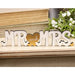 The Mr & Mrs Wooden Cutout Sitter makes a sweet addition to decorative romantic displays. Made from wood, the sitter features carved design depicting the titles “Mr.” and “Mrs.” A metallic gold heart cutout that reads “and” in white script font sits in the middle. Small gold hearts sit where punctuation would. The sitter is freestanding for stable display on a flat surface. Measures 1.75” high by 8.25” wide by .5” deep.