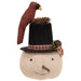 The Nesting Cardinal Snowman Sitter is a decorative plush snowman head figurine made of antiquated ivory linen-style fabric. The snowman has a smiling face, twig nose, and wears a black top hat with a fabric ribbon, jingle bell, twig nest, and miniature cardinal plush. Display this snowman sitting on a shelf or tabletop during the Winter and Christmas season to bring a primitive, rustic touch to the home. Measures 10.5” high by 6” wide by 7” deep.