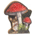 The Woodland Mouse & Mushrooms Chunky Wooden Sitter brings a bold, nature-inspired accent to a decorative display. Carved from wood, the sitter depicts a mouse hiding under a pair of mushrooms. The mushrooms feature thick white stems and red caps with white spots, and green grasses fill out the background. The front of the sitter features photorealistic design with rich color and a subtle crosshatch pattern. The sides and back of the sitter are unfinished for a rustic look. A flat base allows for stable display on a shelf or tabletop. Measures 5” high by 4.25” wide by 1” deep.