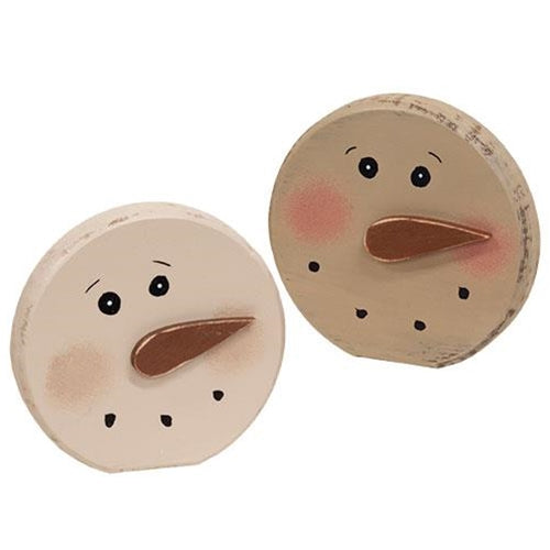 The Blushing Snowman Sitters are an assortment of two decorative wooden snowman head figurines. The snowmen have an ivory or white painted finish, ...