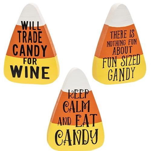 View full detailsWill Trade Candy For Wine Chunky Candy Corn Sitter 3 Asstd.