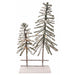 The Flocked LED Trees are a duo of decorative faux trees with dark evergreen branches. The trees have brown-wrapped trunks and sit atop a rectangular white base, complete with a coat of thick white flocking for a charming fresh snowfall effect. The trees include an LED light feature, creating a warm and cozy ambience when displayed sitting on a table or hearth in the home during the Winter and Christmas season. Measures 26” high by 14” wide by 4.5” deep. Requires 3-AA batteries to operate, not included.