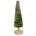 The Sparkle Velvet Christmas Tree brings glamorous style to decorative seasonal displays. The cone-shaped tree is wrapped in green velvet and topped with shimmering glitter and sequins. A flat base allows for stable display on a shelf or tabletop. Measures 9.75" high by 2.75" in diameter.