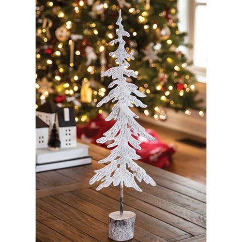The White Washed Metal Christmas Tree is a decorative tabletop tree made of flat branches of rustic white-washed metal with brown detailing. The tr...