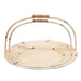 Distressed Antique White Fluted Metal Trays make a unique addition to decorative vintage inspired displays. The trays each feature a flat center with a fluted rim and a stationary handle with a wood grip. A white painted finish with heavy distressing gives the trays an antique look. Sold as a set of 2, the smaller tray fits inside of the larger for seamless storage. The small tray measures 8.5” high by 14.5” in diameter, and the large tray measures 9.5” high by 16” in diameter.