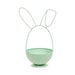 Distressed Metal Bunny Egg Bowls are a pair of decorative metal bowls made with playful springtime style. Each features an egg cup-style base and a wire frame that depicts the silhouette of an egg with bunny ears. The taller bowl is painted in pastel green, and the shorter bowl is painted pastel pink. Both bowls feature a lightly distressed matte finish for a rustic touch. The pink bowl measures 11” high by 5.5” in diameter, and the green bowl measures 12.5” high by 6.25” in diameter.  Accessories sold separately.