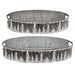 Embossed Snowy Pine Oval Trays sell as a set of two festive winter trays. Trays are made of galvanized metal and feature embossed pine trees with a distressed white finish and handles for carrying. They can be used for displaying fabric fillers, candles, and florals and are a unique way to enhance holiday decorating. Measures 2.75" high by 16" wide by 10.25" deep; 2.5" high by 14" wide by 9" deep.