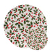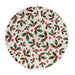 Holly Placemat & Trivet are a set of tabletop textiles adorned with festive allover design. Made from woven white fabric, the placemat and trivet each feature a round shape held together with white stitching. The fabric is printed with a green and red holly pattern. Sold as a pair, the placemat measures 15” in diameter and the trivet measures 6.75” in diameter.