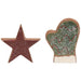 Mitten and Star Wooden Cookies sell as a set of two wood slices that have been painted to look like yummy Christmas cookies! Each is painted with a lightly swirled, textured finish for a realistic icing effect, and has glitter 'sprinkle' details for a festive finish. Mitten is 2.5" wide by .5" deep and 3.5" high. Star is 4" high by 4" wide and .5" deep.