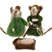 The Felted Nativity is a set of three petite plush decorations made of soft felt fabric. The ornaments depict Mary and Joseph, dressed in green felt clothing, as well as Baby Jesus, wrapped in white felt and nestled inside of a brown felt manger. This nativity can be displayed on a tabletop or shelf or situated on Christmas tree branches for a festive, inspirational addition. Mary and Joseph mice measure 4.5" high by 2.5" wide, Jesus mouse measures 3.5" long by 2" wide by 1" deep.