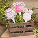 Hello Easter Wooden Plant Pokes bring a sweet seasonal touch to garden decor. Made from wood with watercolor design, each poke features a pointed stem that allows for easy display in a potted plant or decorative arrangement. One poke depicts a white cartoon bunny with text that reads “happy spring.” One shows a wreath of colorful flowers around text that reads “hooray for spring” in a mix of black print and pink script. One features a pink egg that reads “hello Easter” in white text with colorful flowers in the background. Measures 6” high by 3” wide by .125” deep.