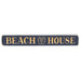 Beach House Engraved Block, 12" features navy blue paint and an engraved flip flop design for a relaxed beach look. It reads, "beach house" in carved lettering and rests freestanding on a flat base. It can be set on a shelf, mantelpiece, or an end table and looks great alone or stacked with similar blocks. Measures 1.5" high by 12" wide. Made in the USA.