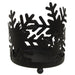 Black Metal Snowflake Pillar Holder is a cutout candleholder crafted from metal with festive wintry design. The candle holder features a black snowflake design on a tray base with three ball feet for stable freestanding display. It holds standard pillars or other candles under 3.75" in diameter. Measures 4.5" high by 3.75" in diameter.