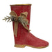 Distressed Red Metal Boot w/Burlap Bow & Pine