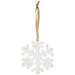 The Distressed Wooden Snowflake Ornament is a versatile winter accent made from wood. The snowflake features a white finish with light weathering for a rustic touch. The ornament hangs from a thin burlap ribbon and can be displayed on a Christmas tree or mantle or used to accent a wrapped gift. Measures 5.25 in. in diameter by .25 in. deep.