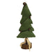 Fabric Christmas Tree is a plush tree wrapped in dark green linen fabric and secured upon a brown tree-stump base. The tree is decorated with rusted metal jingle bells attached to a thin metal garland. The bottom of the tree features a natural woven tan bow. Measures 11” high by 4.5” wide by 2.75” deep.