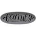The Family Forever Tray is a decorative wooden tray in a long oval shape with a neutral gray painted finish. The tray reads "family forever" in fanciful scripted black lettering. Display this tray propped on a holder or placed on a tabletop, filled with florals or potpourri. Measures 5.5" high by 15.5" wide by 1" deep.