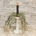 Farmhouse White Spool Candleholder is a wooden taper holder with a distressed, white painted finish. The top of the spool has a .875" diameter opening for holding and displaying a taper candle. Measures 7.25" high by 3.5" in diameter.