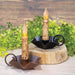 The Flower Taper Holder is a metal taper candle holder featuring a smooth black finish and a 6-point fluted flower shape with a round attached handle. This holder is built to hold a taper candle and fits beautifully with everyday decor, whether displayed on a mantle, shelf, or dining table, alone or paired with other candles and holders. Holder measures 1.75" high and 4.5" in diameter.  Candle not included.