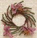 Homespun Pine Ring features a short pine base adorned with burgundy pip berries, burgundy checked ribbon, and rusty stars. It has an inside diameter of 4" and 8" outside diameter.