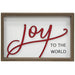 The Joy Frame brings a thoughtful touch to seasonal wall decor. Made from wood, the art piece features a simple frame with a rich brown color. On a white background, the piece features cursive red cutout text that reads “joy” alongside black print text that reads “to the world.” A sawtooth hanger allows for easy display. Measures 8” high by 12” wide.