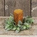 Lamb's Ear Candle Ring is a neutral faux floral that looks lovely displayed all year long. Ring has soft textured plastic leaves and a green-wrapped floral base. Display as is or place around a battery-operated candle for a modern farmhouse look. Measures 4.5" inside and 11" outside diameter. Candle sold separately.