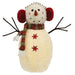 The LED Snowman with Earmuffs is a unique decor piece made with fun, festive design. The figure features a two-tiered snowman shape with a fuzzy off-white finish and twig arms. He wears a green and red knit scarf and a red pair of earmuffs with a spiral headband. A pair of red snowflake cutouts serve as the snowman’s buttons, and he has a friendly face made up of bead eyes, an embroidered smile, and an orange stuffed carrot nose. Powered by 3 AA batteries, which are not included, LED lights add a festive glow to the snowman. A flat surface allows for stable display on a shelf or tabletop. Measures 18” high by 17” wide by 8” deep.