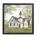 The Let Go & Let God Framed Print makes an inspiring addition to a wall art collection. The art piece depicts a small church with classic construction, white siding, and a natural wood door and roof. A bell hangs in the church’s steeple, which is topped with a white wooden cross. The church sits in a lush green field, surrounded by leafy trees and blooming white florals. A patch of yellow flowers sits under on of the church’s windows. A black and cream-colored frame encases the print, and a sawtooth hanger on the back allows for easy display. Measures 13” high by 13” wide by .5” deep.