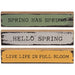 Please note: This Item features a variety of designs which are each sold individually (not as a set). Please add a note in your cart to indicate your preference.  If no style is specified, one will be selected at random by our team. Life in Full Bloom Mini Sticks bring a thoughtful touch to rustic springtime decor. Made from wood, the decorative sticks feature freestanding horizontal design. The sticks feature painted fronts and unfinished sides with a distressed effect. One stick is painted green and reads “spring has sprung,” one is painted gray and reads “hello spring,” and one is painted a mustard color and reads “live life in full bloom.” Each measures 1” high by 6” wide by .5” deep.