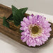 The Lilac Gerber Daisy Stem brightens up decorative displays with fresh floral style. The long plastic stem features a green color and textured design. Rich green leaves with a smooth finish sprout from the stem. A bright faux floral bloom tops the stem and features dimensional lilac and light green coloring and a detailed center. Measures 23.5” long by 4” in diameter.