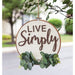 Live Simply Sampler Wall Hanger is inspired by embroidery hoops and features a tan background, mixed greenery, wood frame, and brown cutout letters that read, "Live Simply." Hanger comes with a jute string and is perfect for display in an entryway or above a couch. Measures 10" high by 9.25" wide by .25" deep.
