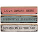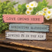 Please note: This Item features a variety of designs which are each sold individually (not as a set). Please add a note in your cart to indicate your preference.  If no style is specified, one will be selected at random by our team. Love Grows Here Mini Sticks bring a thoughtful touch to rustic springtime decor. Made from wood, the decorative sticks feature freestanding horizontal design. The sticks feature painted fronts and unfinished sides with a distressed effect. One stick is painted coral and reads “love grows here,” one is painted gray and reads “spring is in the air,” and one is painted dark teal and reads “springtime blessings.” Each measures 1” high by 6” wide by .5” deep.
