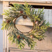 Mountain Pine Candle Ring comes with an icy finish and features a mix of frosted mini pine cones and green plastic branches on a brown-wrapped base. Display around a large pillar or jar candle for a cozy look or use it on its own as a small wreath. Looks charming in any room. Measures 6" inside and approximately 12" outside diameter.