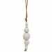 The Glittered Icicle Ornament is a decorative length of jute rope with a hanging loop. The jute is strung with white wooden beads, complete with silver glitter for an icy, shimmery effect. Hang this ornament on a Christmas tree, frame, or knob for a charming and wintry touch to the home during the holidays. Measures 4” high.