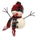 The Winter Tartan Snowman is a decorative plush snowman figurine made of soft cream-colored fleece fabric. This adorable snowman has brown twig arms, jingle bell buttons, a carrot nose, and features a matching red tartan fleece hat and scarf. The bottom of the plush is weighted, ensuring a secure display"”place this sweet snowman on a riser, shelf, or tabletop for a cheerful and festive addition to the home during Winter and Christmas. Measures 9" high by 7" wide by 4" deep.