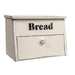 The Bread Box is a decorative and functional wooden bread box container with a white painted finish and distressed detailing. The box is simple, featuring stamped black lettering, reading “Bread”, as well as a hinged top that lifts and a knobbed door opening on the front. This box makes a great addition to a kitchen countertop, great for storing breads, pastries, and other baked goods, or being displayed for decorative use, filled with florals or other items. Measures 12” high by 16.5” wide by 10” deep. Made in the USA!