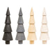 9.5"H Wood Spindle Tree sells as an assortment of four designs. Tree is made of wood and it is freestanding for use on shelves and tabletops. It has a distressed black, gray, tan, or white finish and it looks great alone or paired with various holiday sitters. Measures 9.5" high. Please note: This item features an assortment of designs which are each sold individually (not as a set).