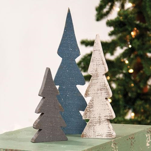 3/Set Snowy Farmhouse Colors Wooden Trees