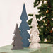 Snowy Farmhouse Colors Wooden Trees is a set of three wooden trees with a blue, white, and grey painted finish. Trees are freestanding and lightly distressed and they look great on tabletops, mantels, or counters with a variety of holiday decor. Trees come tied with jute rope and measure 6.5" high by 3.25" long by 1" deep; 9.5" high by 3.25" long by 1" deep; and 12" high by 4" long by 1" deep.