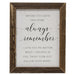 Always Remember Framed Print is made in the USA and features a stained brown frame and keyhole slot for wall display. Print reads, "before you leave this home always remember I love you no matter what - I believe in you - trust your gut - follow your heart" in black text over a white background. Print looks great in any room and measures 17.25" high by 13.5" wide by .5" deep.