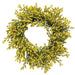 6/12" Yellow Array Astilbe Candle Ring features plastic astilbe buds with a yellow and green color scheme. Ring has plastic stems and a flat plastic base and it can be displayed freestanding or mounted like a wreath. Ring is great for accenting candles and it measures a 6" inner diameter and a 12" outer diameter.