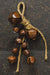 The Bells On Jute Cluster are strings of 3/8" rusty jingle bells on wires, accented with a pair of 1" bells, and a jute string bow and hanger. 5" H