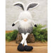 Black & White Buffalo Check Bunny Ear Gnome is a spring gnome with black and white buffalo check overalls and bunny ears with matching insides. Gnome has long dangling legs, a weighted base for display on stools, risers, and chairs, and his ears are wired for desired adjustments. Gnome looks great alone or paired with spring or Easter decor and measures 12" high by 5.5" wide (when seated).