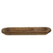 The Carved Wood Small Bread Bowl is a decorative ovular bowl made of chunky, lightweight wood with a roughhewn texture and a natural dark brown finish. This bowl makes a charming addition to everyday home decor, giving a rustic and handmade feel to any space. Display this bowl with potpourri, florals, greenery, or other filler, perfect for placing on a dining table, coffee table, or shelf. Measures 2" high by 19" long by 5.5" wide. Accessories sold separately.