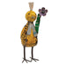 The Cora Baby Chick is a decorative standing chick figurine made of unique recycled metal material. The chick is yellow with a gray scarf and purple flower, all with grungy, soldered detailing. The chick has metal legs with flat feet for a secure freestanding display, ideal for a shelf or tabletop in the home during Spring. Measures 9.5” high by 4” wide by 3” deep.