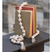Distressed Beaded Garland with Tassels is a wood garland with round beads and leather tassels. Garland has a distressed white finish and can be used to decorate a mantel, embellish a floral garland, or fill a bowl or basket. Measures 46.5" wide by 1" high.